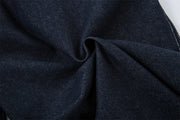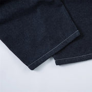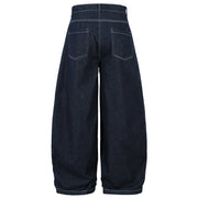 Cut from a dark rinse denim, they hold their structure while still offering a comfortable, worn-in feel over time. The double pleat detail adds volume at the front, flowing into a loose, tapered barrel leg that stacks naturally at the ankle.