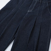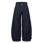 Double Pleat Dark Rinse Barrel Jeans