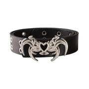 The Dark Flame Heart Belt brings bold attitude to any outfit. Designed as a unisex statement piece, it features a striking flame-shaped buckle with a heart centre, paired with a smooth black strap and metal eyelet detailing. Easy to style with everyday fits, it adds edge without overpowering the look.