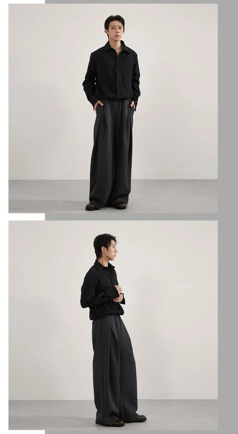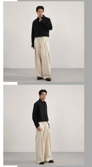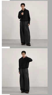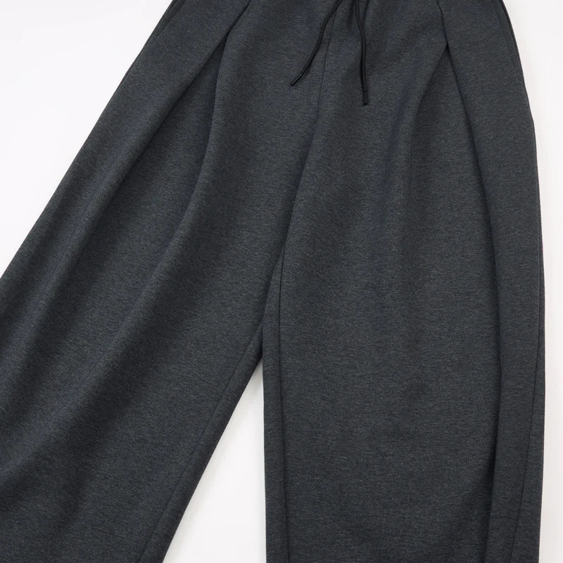 The Volume Pleat Wide Leg Jersey Pants blend comfort and statement shape for a relaxed, elevated streetwear look. Made from a soft jersey fabric with a fluid drape, they feature deep front pleats and an extra-wide leg that falls naturally over sneakers. Finished with an elasticated drawstring waistband for an adjustable fit and subtle structure throughout the silhouette.