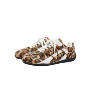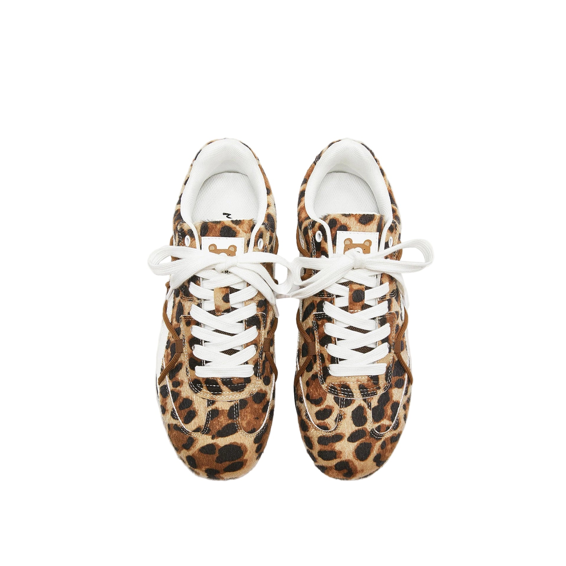 The Drift Animal Print Sneakers bring a bold statement to everyday streetwear. Designed with a retro runner silhouette, they feature a leopard-print upper contrasted with clean white panelling and tonal brown laces. A lightweight sole keeps them comfortable for daily wear, while the textured pattern adds instant attitude to any outfit.